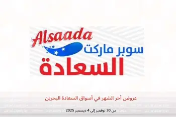 أسواق السعادة البحرين تعلن عن تخفيضات جديدة بعنوان « عروض أخر الشهر » المتوفرة حتي يوم 4 ديسمبر 2025, عروض جديدة وأسعار فقط في البحرين.
