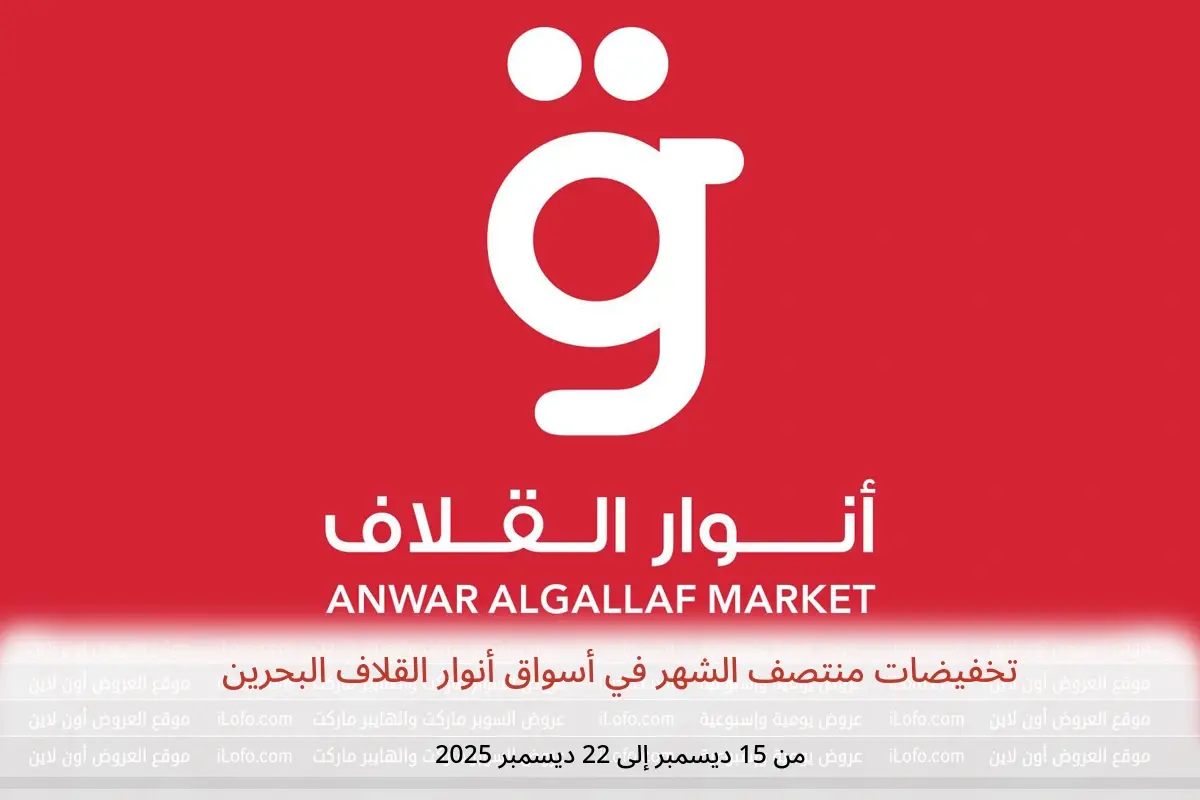 أسواق أنوار القلاف البحرين تعلن عن تخفيضات جديدة بعنوان « تخفيضات منتصف الشهر » المتوفرة حتي يوم 22 ديسمبر 2025, عروض جديدة وأسعار فقط في البحرين.