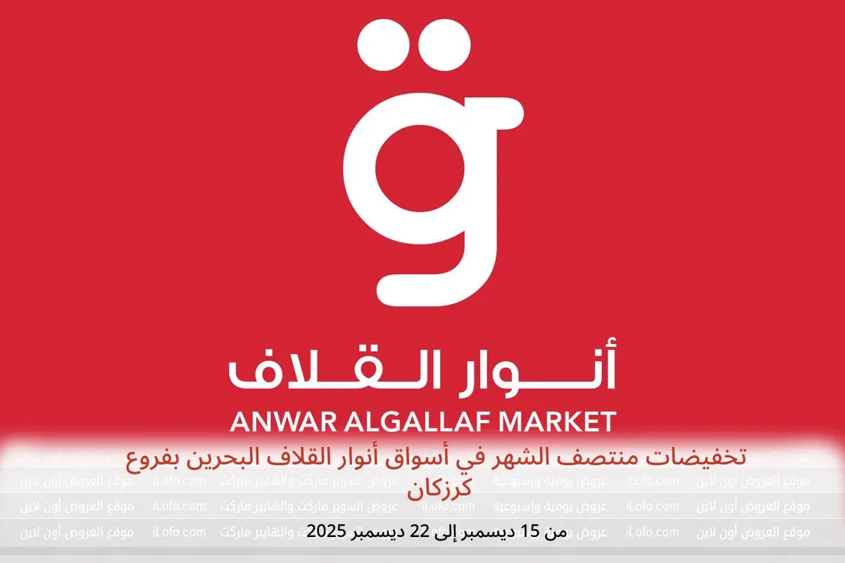 تخفيضات منتصف الشهر في أسواق أنوار القلاف البحرين بفروع كرزكان متاحة للتسوق حتي يوم 22 ديسمبر 2025 وتحتوي علي 10 صفحة بالكتالوج.