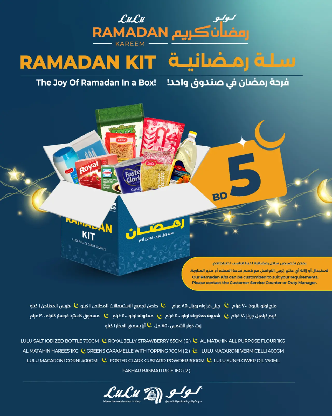 تنويه: صور وأسعار عروض السلة الرمضانية في لولو البحرين المعروضة في هذا الكاتالوج لأغراض توضيحية فقط، وتخضع للتوفر في الفروع خلال فترة العرض.