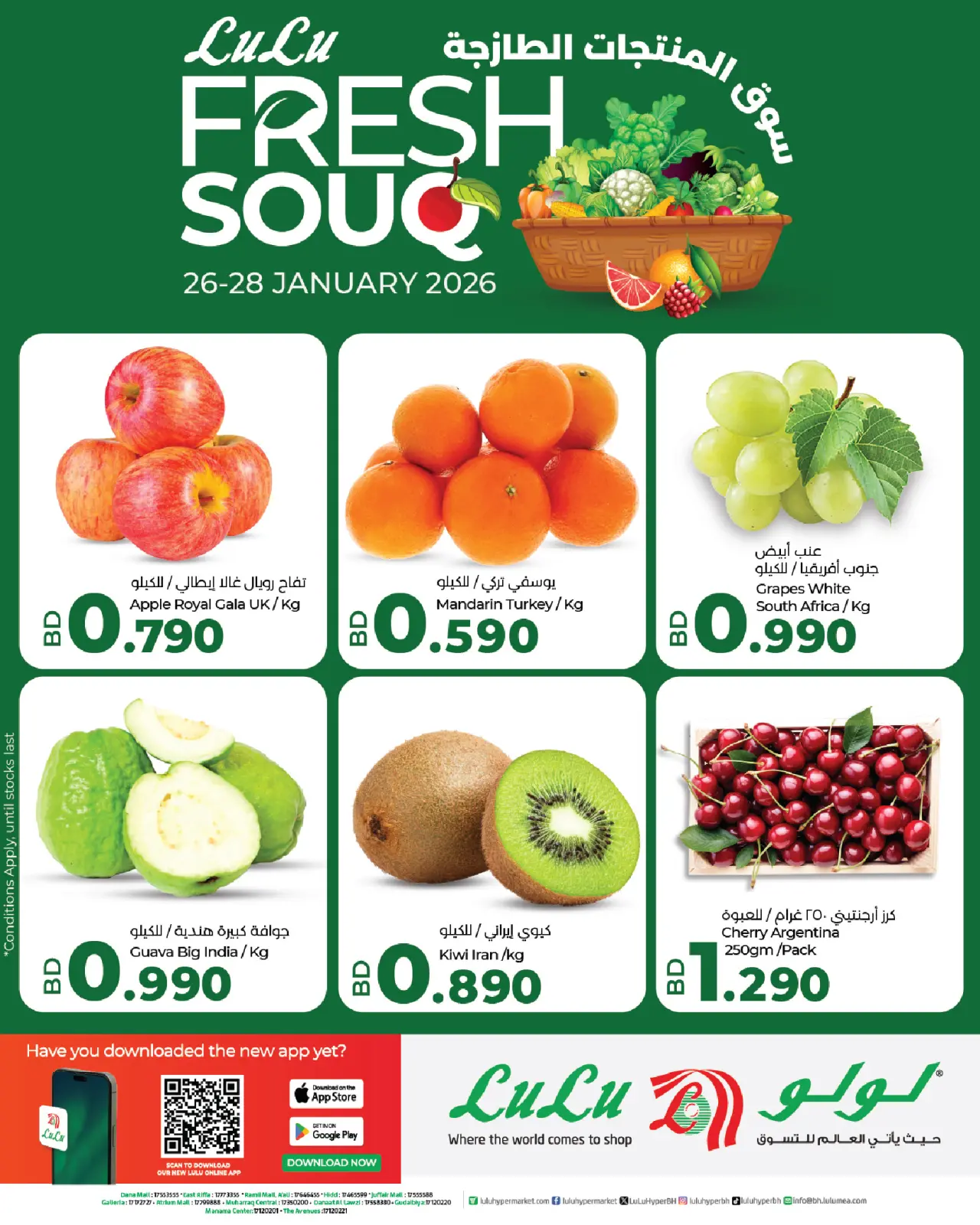عروض لولو البحرين من 26 حتى 28 يناير 2026 عروض سوق المنتجات الطازجة