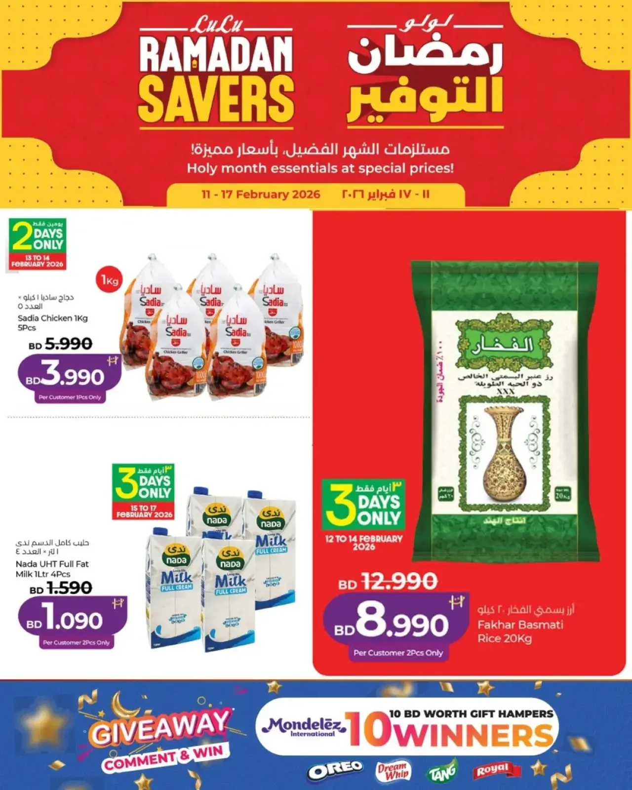تنويه: صور وأسعار عروض رمضان التوفير في لولو البحرين المعروضة في هذا الكاتالوج لأغراض توضيحية فقط، وتخضع للتوفر في الفروع خلال فترة العرض.