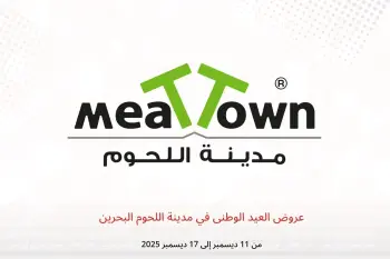 مدينة اللحوم البحرين تعلن عن تخفيضات جديدة بعنوان « عروض العيد الوطنى » المتوفرة حتي يوم 17 ديسمبر 2025, عروض جديدة وأسعار فقط في البحرين.