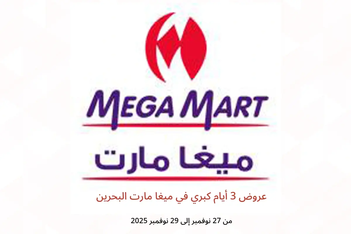 ميغا مارت البحرين تعلن عن تخفيضات جديدة بعنوان « عروض 3 أيام كبري » المتوفرة حتي يوم 29 نوفمبر 2025, عروض جديدة وأسعار فقط في البحرين.