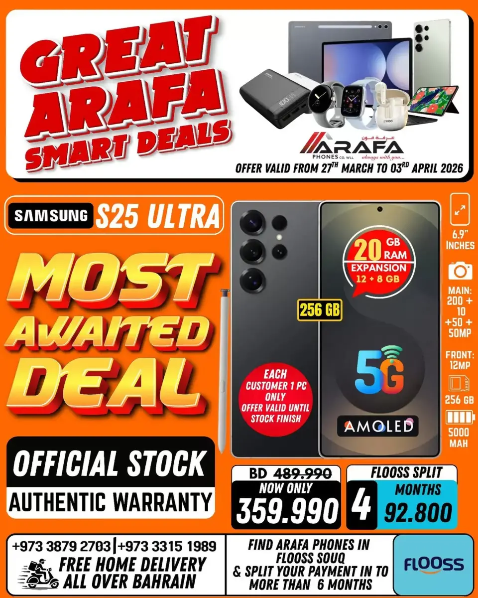 هذا العرض متاح في جميع فروع عرفة فون البحرين.