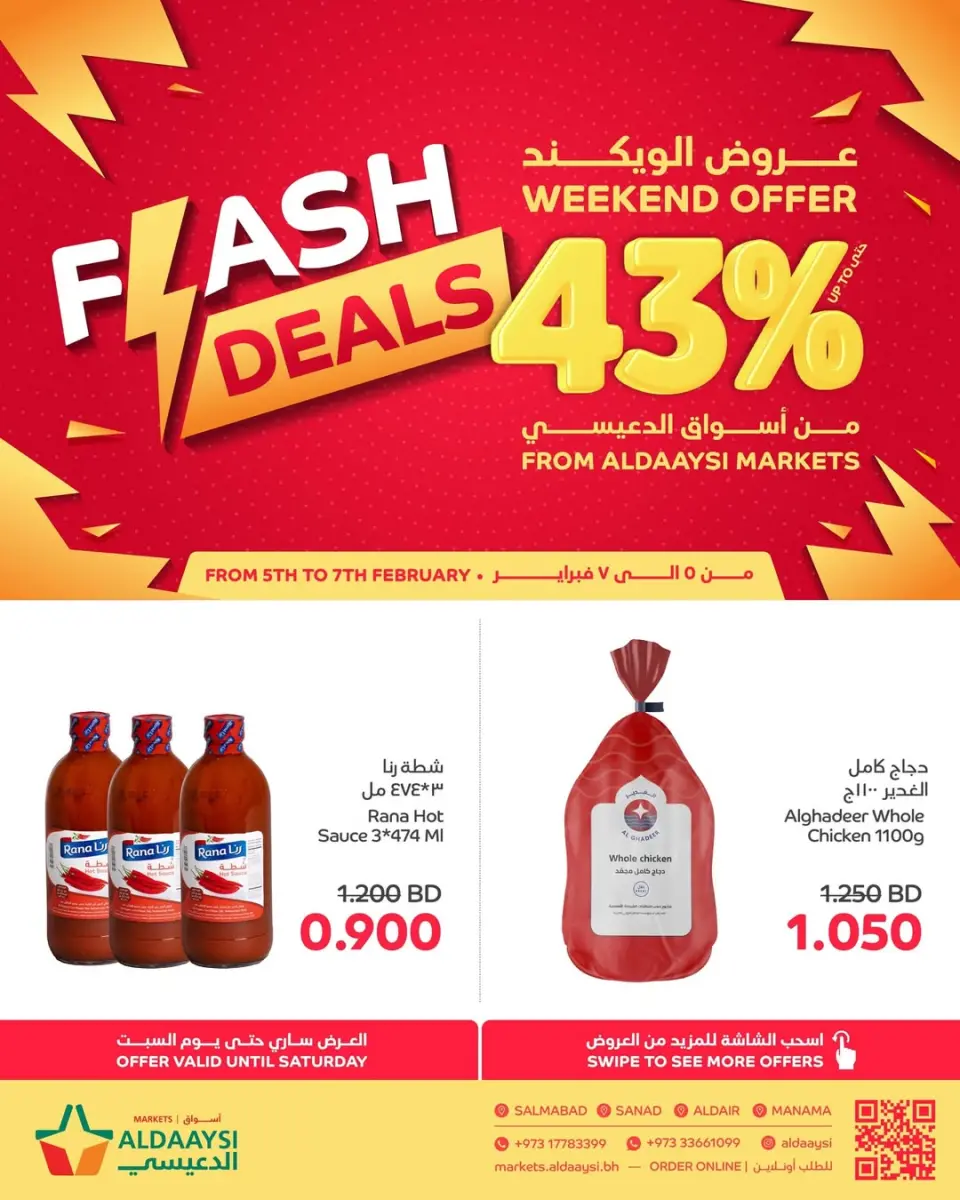 Discover the latest Aldaaysi Markets offers in Bahrain today . Browse the Weekend Deals catalog available until 7 February 2026.