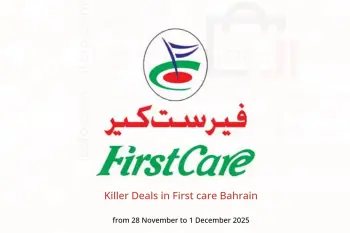 First care Bahrain announces new discounts titled « Killer Deals » available until 1 December 2025, new offers and prices only in Bahrain.