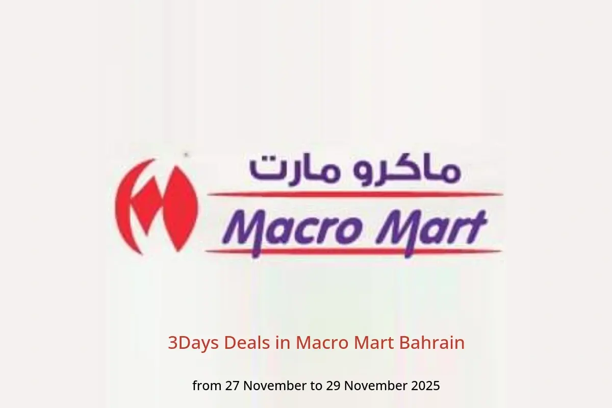 Macro Mart Bahrain announces new discounts titled « 3Days Deals » available until 29 November 2025, new offers and prices only in Bahrain.