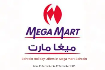 Mega mart Bahrain announces new discounts titled « Bahrain Holiday Offers » available until 17 December 2025, new offers and prices only in Bahrain.