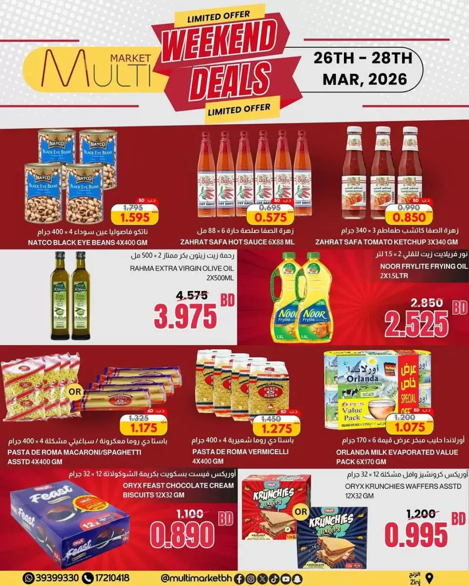 Multi Market Bahrain Zinj branches Offers Weekend Deals from 26 to 28 March 2026