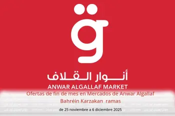 Mercados de Anwar Algallaf Bahréin en sucursales Karzakan anuncia nuevos descuentos titulados « Ofertas de fin de mes » disponibles hasta el día 6 diciembre 2025, nuevas ofertas y precios sólo en Bahréin.