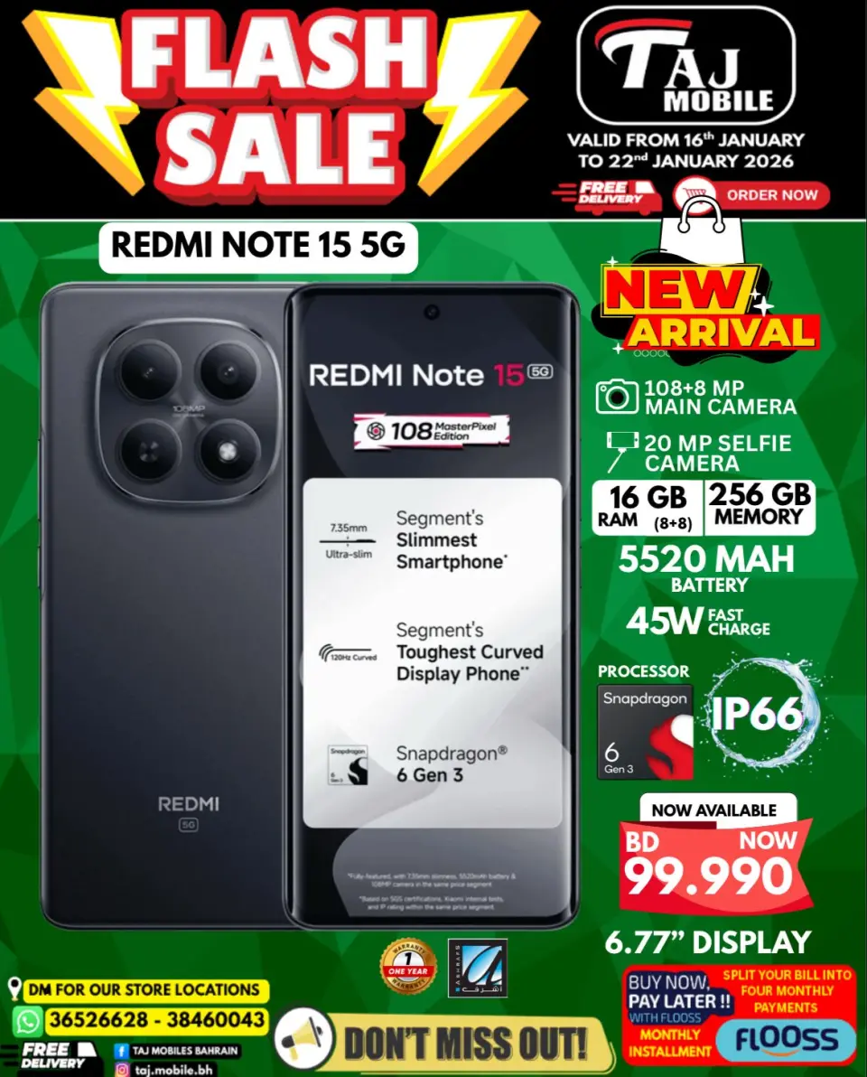 Cette offre est disponible dans toutes les succursales de Mobiles Taj — Bahrein.